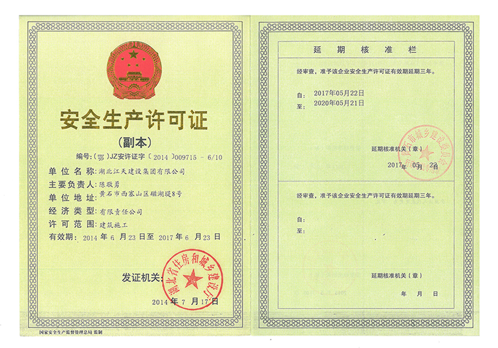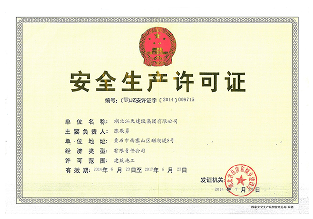 安全生產許可證正本